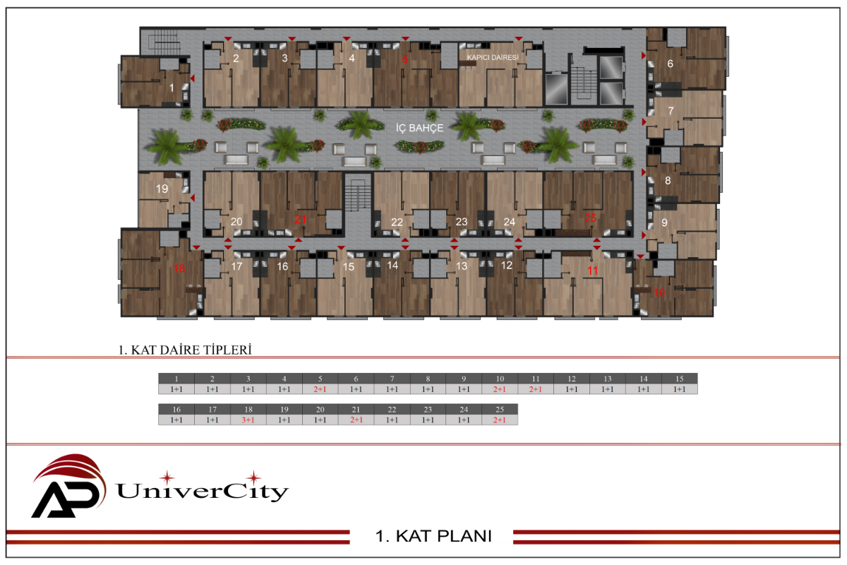 Proje kapsamında toplamda 133 adet normal ve dubleks rezidans, 10 adet ticari dükkan bulunuyor. Rezidanslar, 1+1'den 4+1 dubleks odaya kadar farklı seçenekler sunuyor.